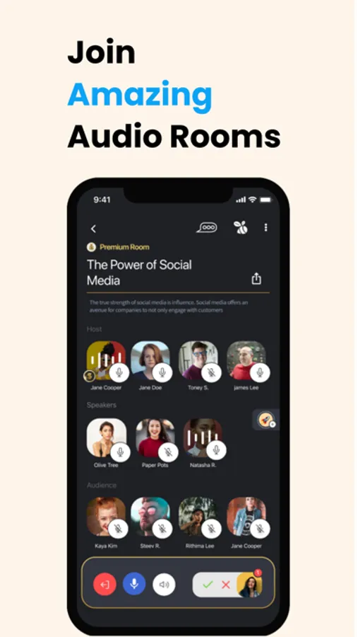 - Host unfiltered conversations in private audio rooms.