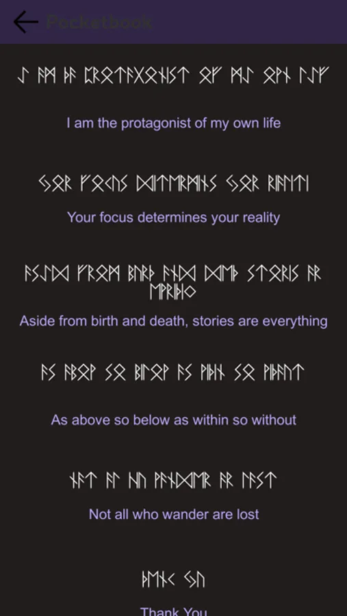 - Pocketbook feature with different Runic phrases and Nordic / Viking poems