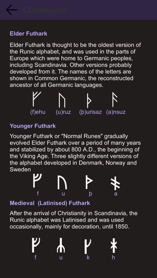 - Flashcard type of learning to learn the different runes of the Runic alphabet as easy and efficient as possible