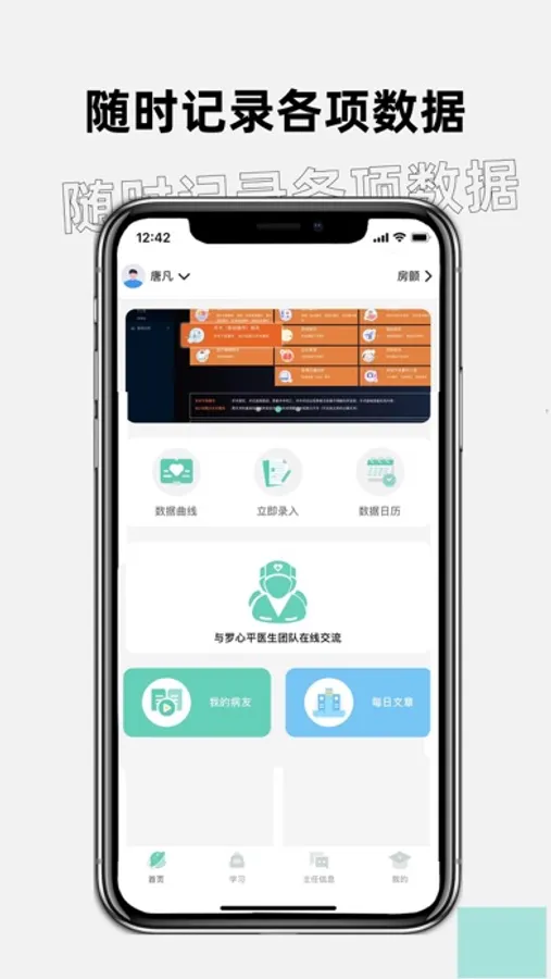 建立患者病症档案,通过App建立患者与医生的联系,患者或家属可通过App建立档案,录入各项数据,实时查看健康数据记录,通过日历查看与曲线查看等方式,观察数据变化从而做出及时治疗方案。建立患者之间的交流平台,相互学习治疗经验与心得。