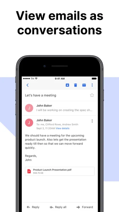 Browse your entire mailbox and find exactly what you’re looking for, by sender, subject, or keyword!