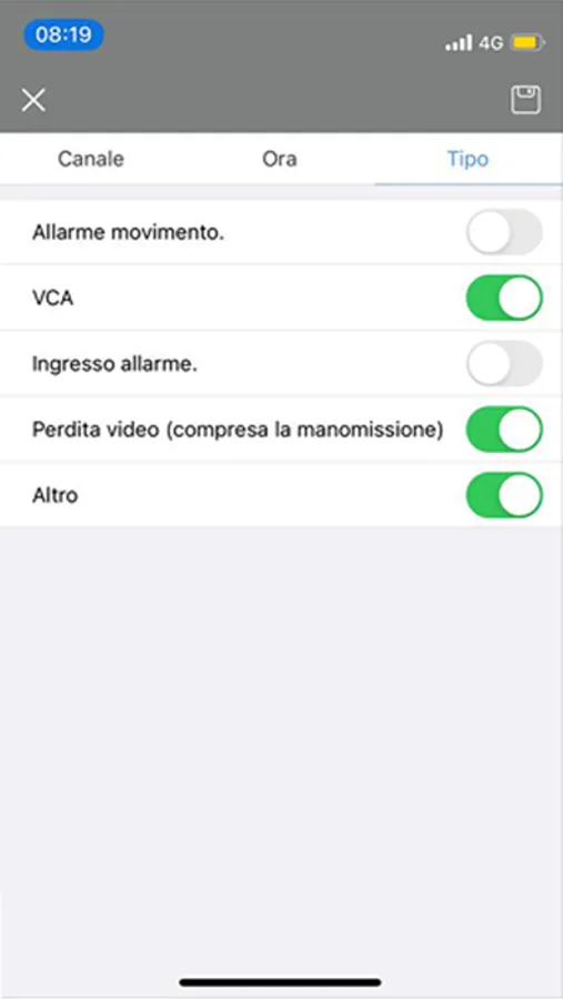 7. Impostare il programma di registrazione e di notifica degli allarmi