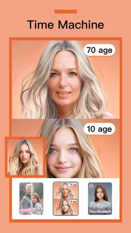 The time shuttle takes you through one-click travel, super-real filters to become younger and older, recall the appearance of youth, and see what you will look like in the future.