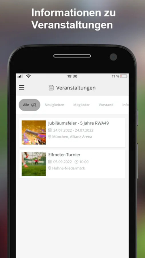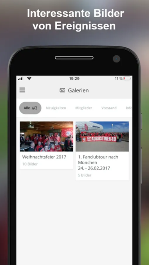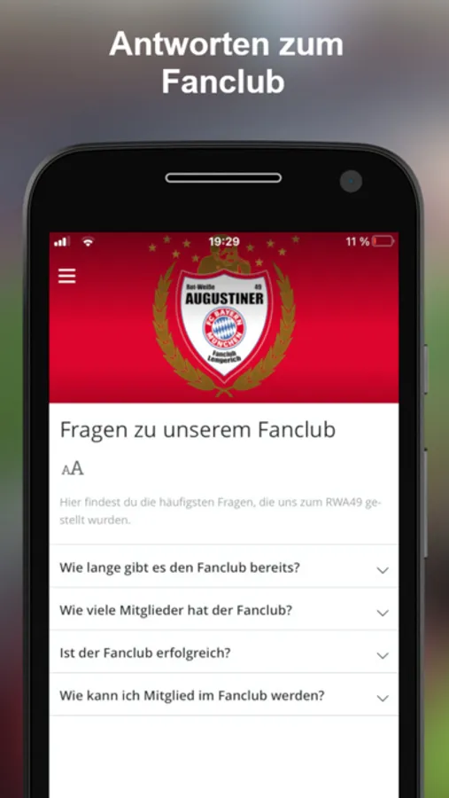 Die RWA49-App richtet sich an die Mitglieder des Fanclubs "Rot-Weiße Augustiner 49". Sie informiert über das aktuelle Geschehen, sowie über Veranstaltungen, Fanclub-Artikel und Neuigkeiten des Fanclubs. Mitglieder erhalten hierbei einen exklusiven Zugang, den sie unkompliziert unter www.rwa49.de beantragen können und der ihnen uneingeschränkten Zugriff auf alle Informationen bietet. Benachrichtigungen über freie Kartenkontingente, eine Pinnwand zum Austausch von Angeboten und Nachfragen von fanclubspezifischen Dingen, sowie viele Bildergalerien runden das Angebot der App ab.