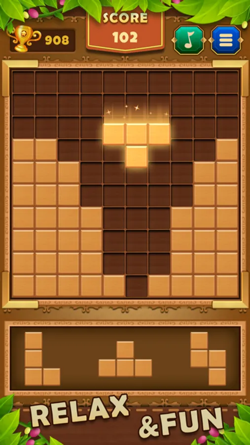 - Place the wood pieces into play board. If blocks fill a line or a horizontal line, they will be destroyed and freeing up space for new pieces.