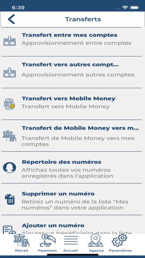 - Plus besoin de vous déplacez en agence pour vos transactions, vous pouvez les faire vous-même à partir de votre appli
