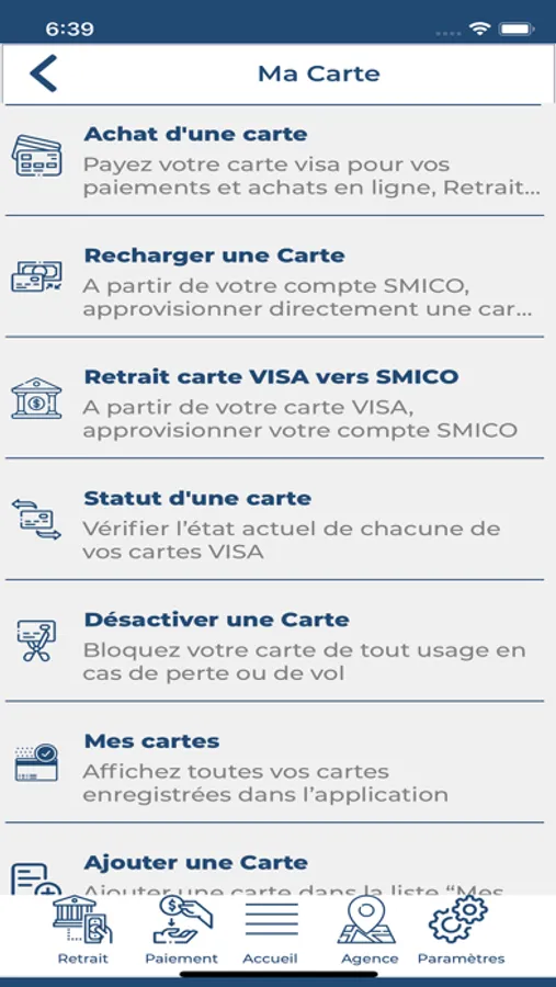 - Carte prépayées (Solde, rechargement, Relevé, Transfert de carte vers SMICO)