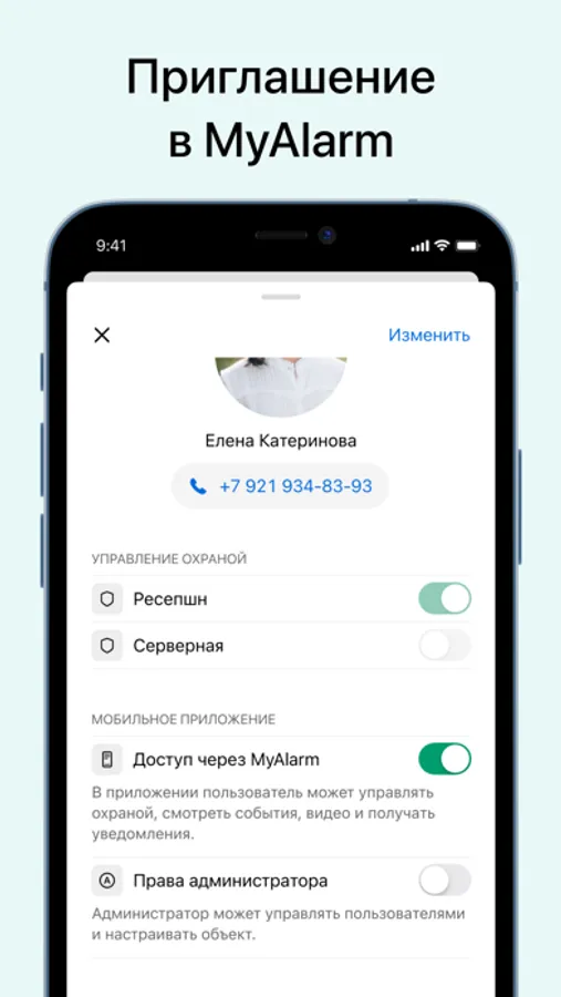 • Изменяйте доступ к объекту в MyAlarm, согласовав список пользователей с ответственным на объекте;