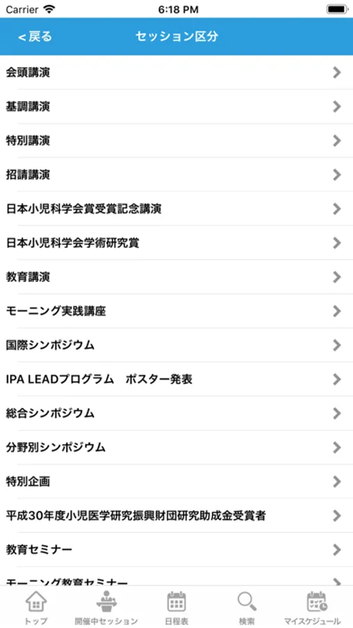 会期中、その時刻に発表されているセッションが一覧表示します。