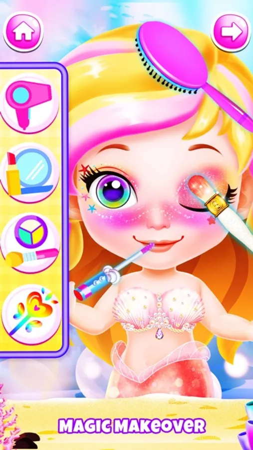 5. Dress up the little mermaid. There are many makeup tools here: eyebrows, contact lenses, lipsticks, etc.