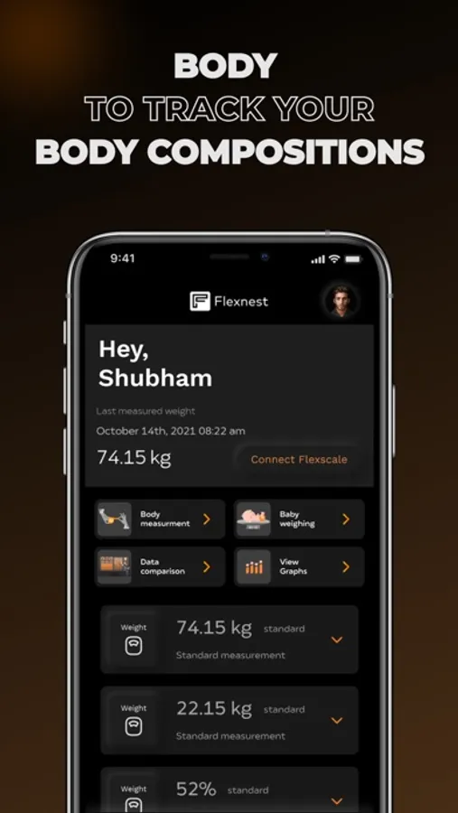 The Flexnest App is here to revolutionize At-Home workouts and your fitness journey. The Flexnest app is compatible with the Flexscale – India’s 1st and smartest weighing scale which tracks over 13+ body parameters like Body Fat, Protein, BMI etc. The Flexnest App also keeps a track of changes to your body with easy to understand graphs and metrics.