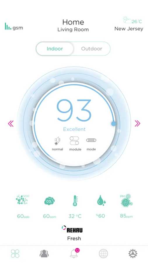 With REAHU APP; the air quality of the baby room, kitchen, living room and bedrooms is always under your control.