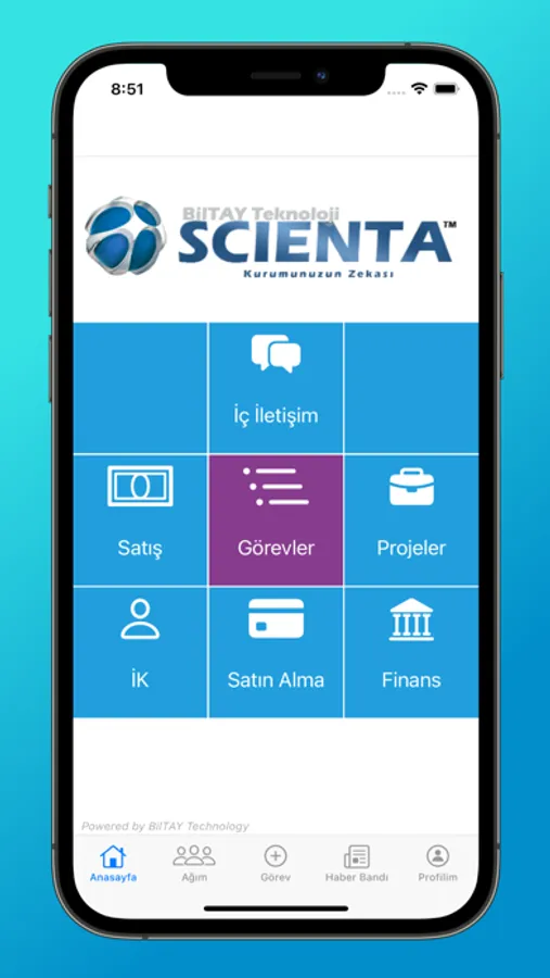 Biltay Teknoloji SCIENTA yoğun çalışan yöneticilerin, takip etmesi gereken profesyonellerin, işte ve hareket halindeyken üretken kalmalarına yardımcı olan önemli bir iş çözümüdür. Aktif olarak kurumunuzdaki çalışan kişiler tarafından oluşturulmuş Teklif&Sipariş onayı, Satınalma onayları ve fatura onaylarınızı gerçekleştirebilmenizi ve takım arkadaşlarınıza görevler oluşturup takip edebilmenize olanak sağlar.