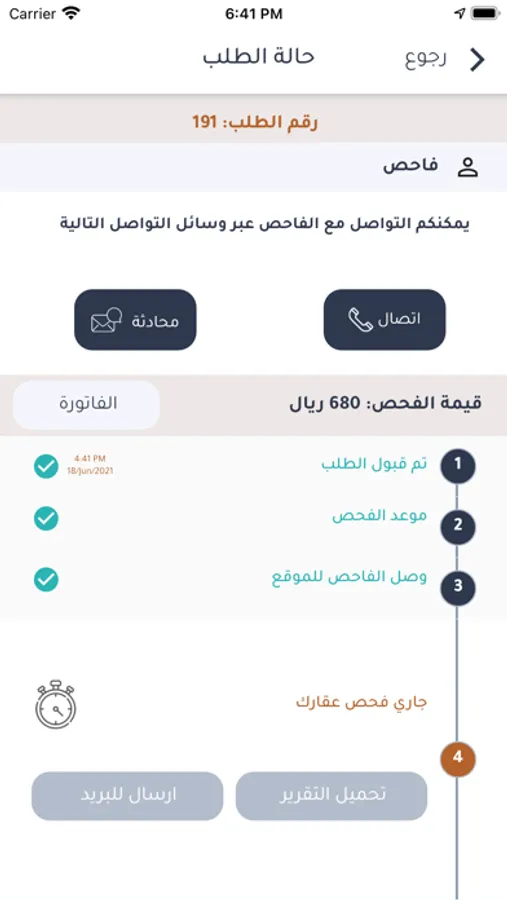 بعد اتمام عملية الفحص لعقارك ستحصل على تقرير شامل، وتستطيع استعراضه وتحميله عبر التطبيق
