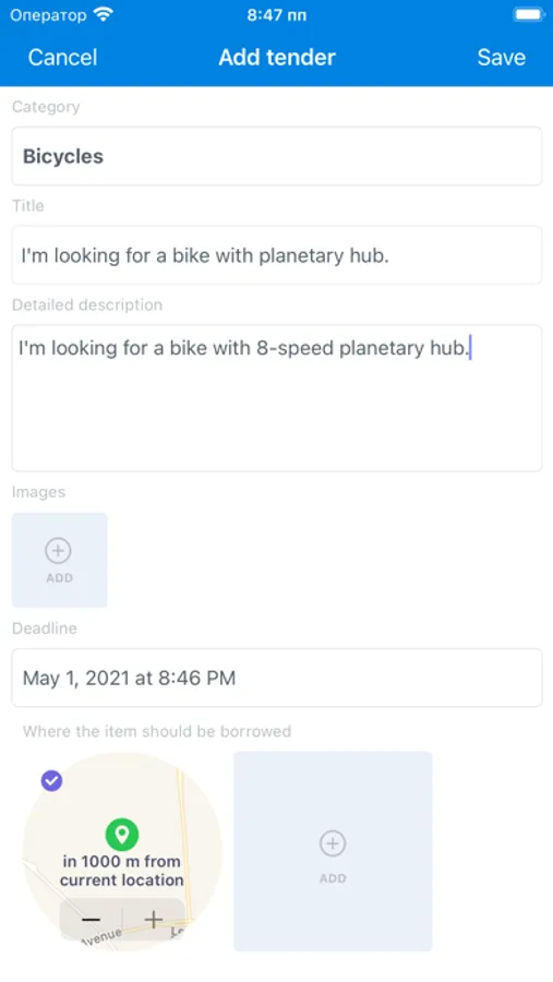 Choose a product category, your location and a deadline, and be sure that someone will respond to your request!