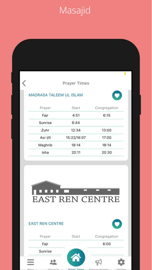 With this app, you can easily stay on top of your daily prayers. Whether you're at home, work, or traveling, the app provides you with accurate daily prayer times for multiple masajid across the UK. You can easily switch between different masajid, as the app allows you to favorite and unfavorite a masjid. This means you can select your preferred masjid and have quick access to its prayer times and announcements. You'll also receive notifications for your favorite masjid's announcements, such as Iftar timings, Taraweeh schedules, Eid announcements, and more, ensuring you never miss any important information.