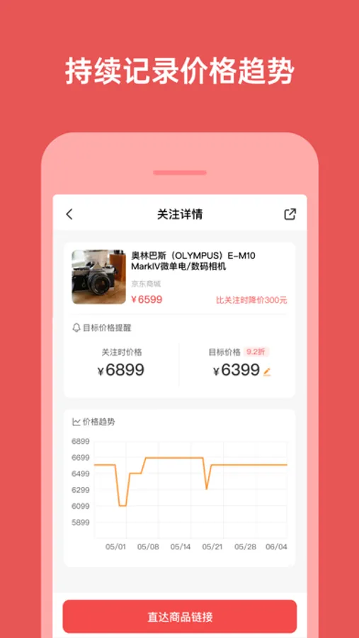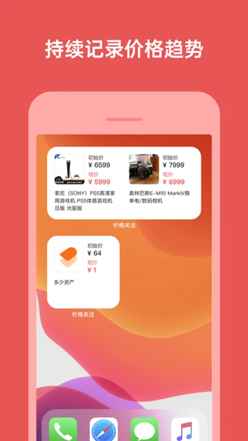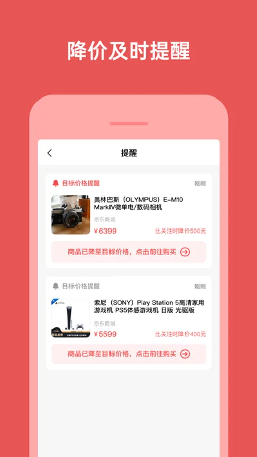 使用价格关注,可以将来自京东、淘宝、天猫等平台的商品添加到关注。在降价时获得提醒通知。