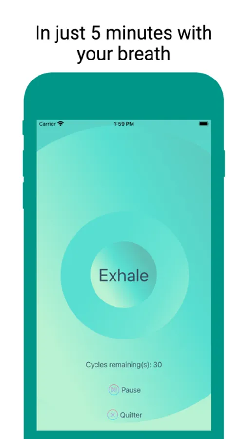 The app is set to a 4 second inspiration for 6 second expiration pattern, this is the best setting to effectively reduce stress and anxiety during a cardiac coherence session.
