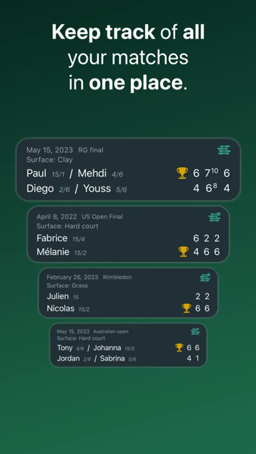 With Statennistics, it's almost like being a pro on the ATP or WTA tour.