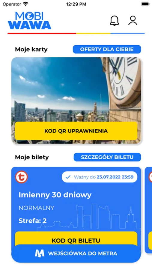 Zakup biletów to jednak nie wszystko! Aplikacja mobiWAWA umożliwia również okazywanie ich do kontroli. Na aktywnym bilecie użytkownik znajdzie przycisk „Kontrola biletu”, który skutkuje wyświetleniem jego imienia i nazwiska, aktualnego zdjęcia, rodzaju biletu, daty jego ważności oraz kodu QR. Ten ekran z danymi okazuje się kontrolerom biletów.
