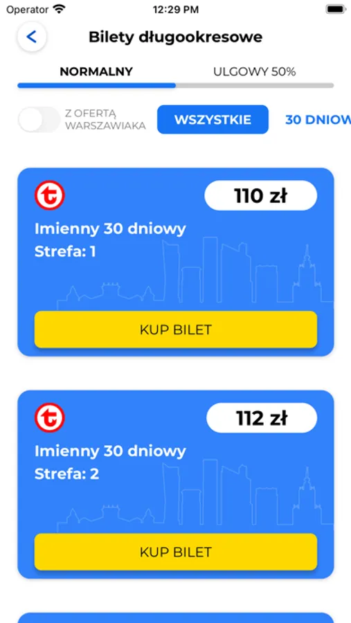 W aplikacji mobiWAWA dostępna jest oferta długookresowych biletów komunikacji miejskiej w m.st. Warszawie. Zakup biletu jest możliwy po zarejestrowaniu konta użytkownika w aplikacji i zalogowaniu się do niej, a następnie wypełnieniu swojego profilu użytkownika, w tym załączeniu zdjęcia, podania numeru telefonu kontaktowego oraz wyboru biletu z aktualnej oferty.
