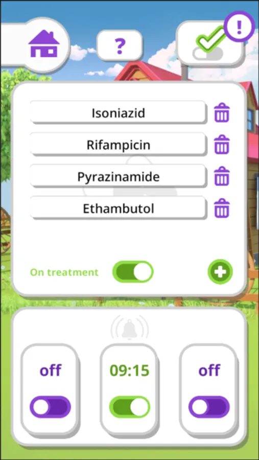 You can choose a companion and get into intercative dialogues. You will learn about TB in general, about how to protect your loved ones from getting infected, about your diagnosis, necessary tests, possible side effects and other details, that are relevant for your specific kind of TB. You can enter your medication and set daily pill reminders. See how you are making progress and let your companion cheer for you every day!