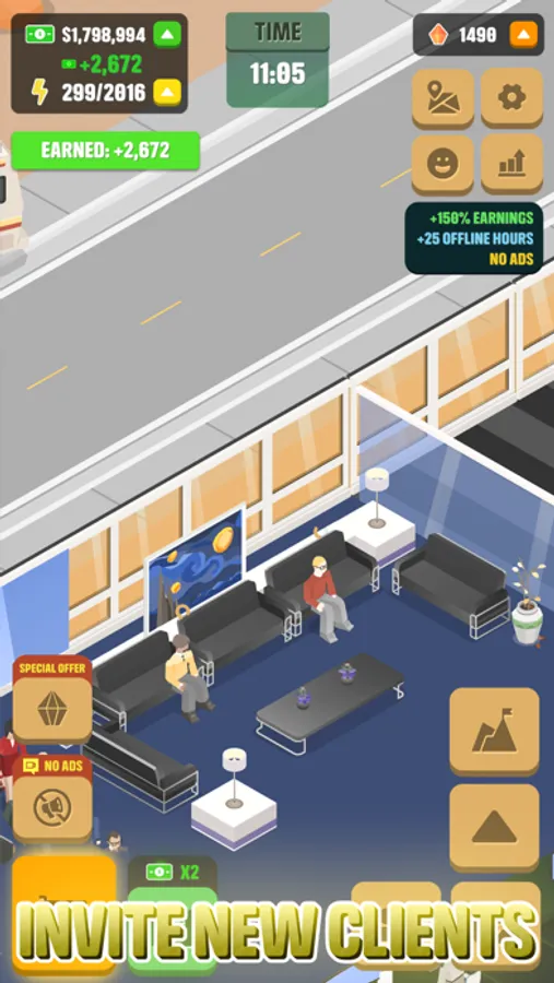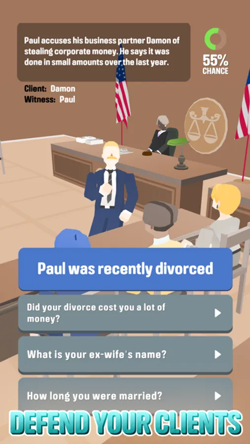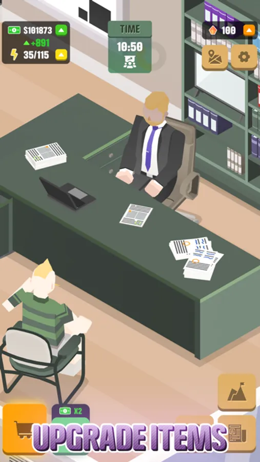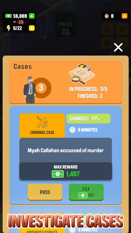 Run the office and manage your lawyers. Provide legal advice for the clients and earn money to become a business tycoon. Lawyers visit the courthouse daily, so make sure to keep them satisfied and motivated to win most cases.