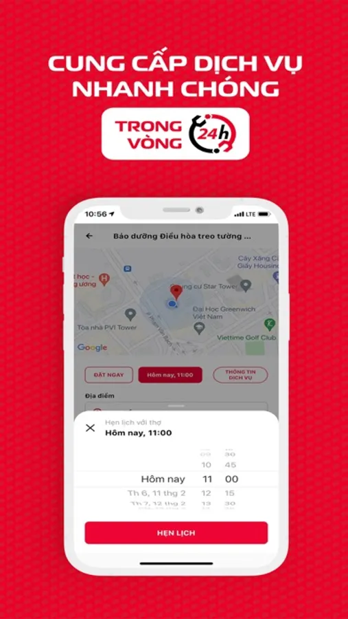 • Nhân viên kỹ thuật đến ngày trong 24h.