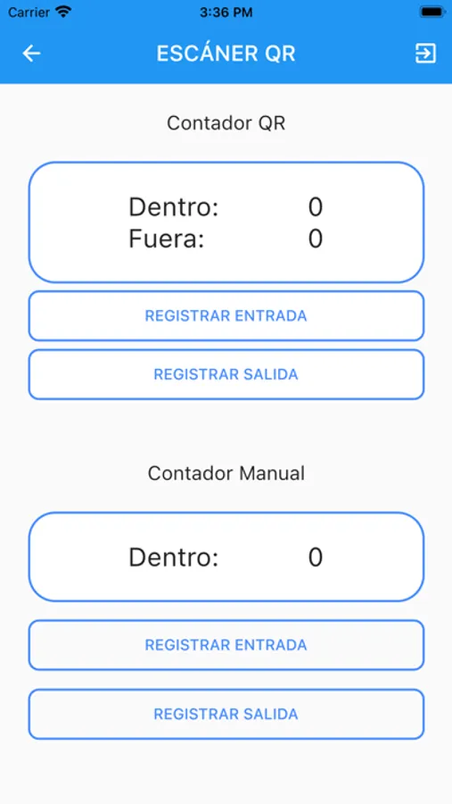- Conteo del aforo disponible (accesos, aforo actualizado...).