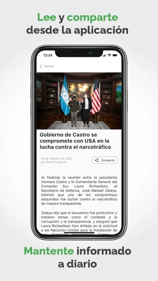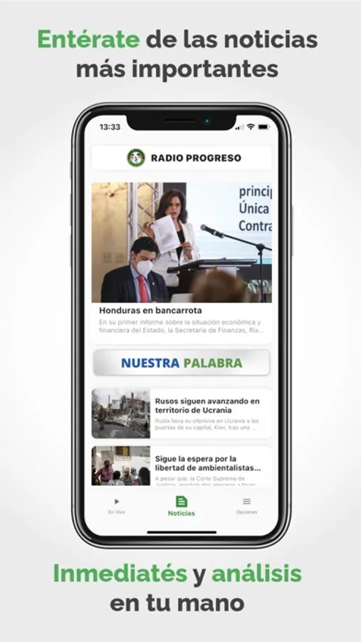 Dentro de la aplicación puedes leer las noticias que son subidas a la página web y también escuchar la programación de Radio Progreso completamente en vivo.
