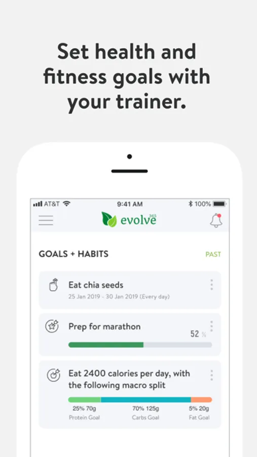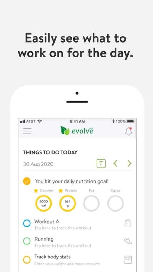 With the Evolve 365 App, you can start tracking your activity and meals, body stats like your measurements, and achieving your fitness goals, all with the help of your personal coach. We are with you every step of the way, you are never on your own.