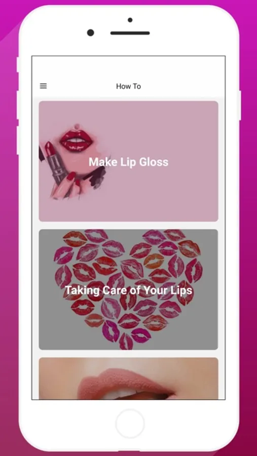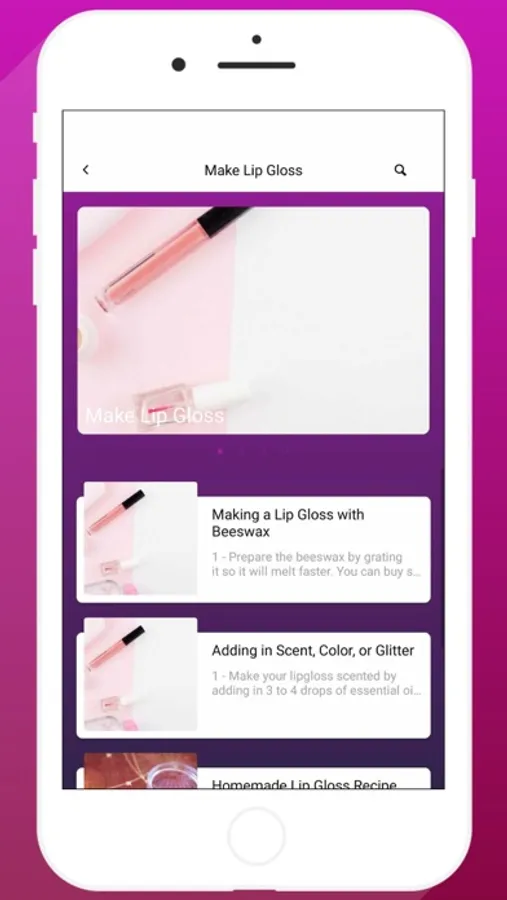 Variety of guiding articles about making lip gloss this apps comes with Attractive and easy to use interface and step by step images in each article.