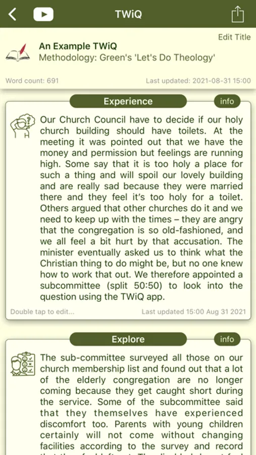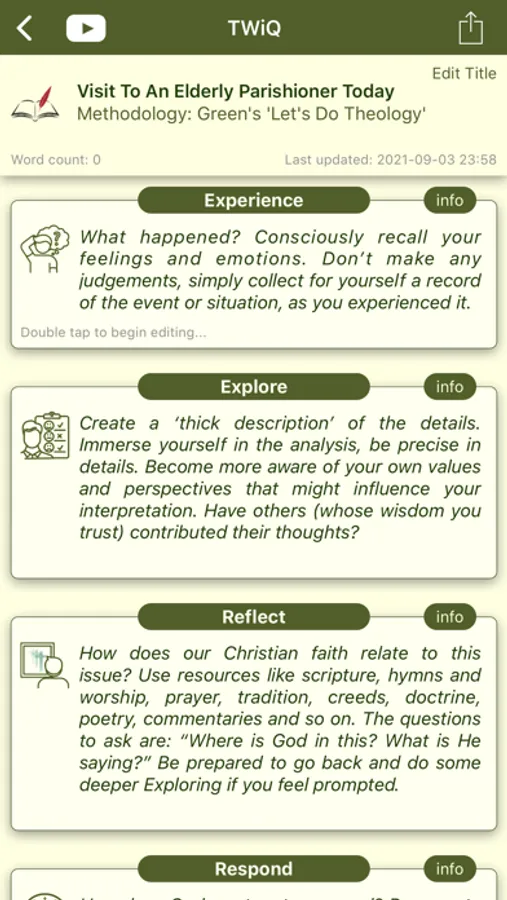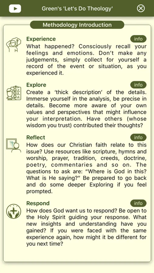This first release focuses on the theological reflection methodology defined by Rt Rev Laurie Green which is practiced widely in the UK and overseas. We are working with other methodology authors to provide a selection of reflection methodologies suited to different situations.