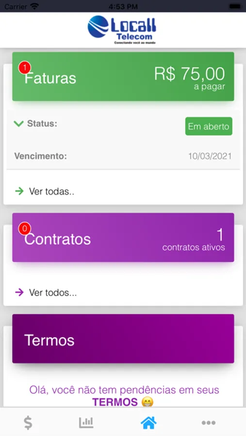Um aplicativo para você, cliente Locall Telecom consultar suas faturas, assinar seu contrato e desbloquear seu acesso a um clique.