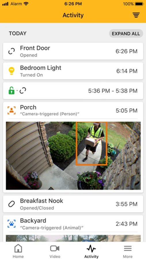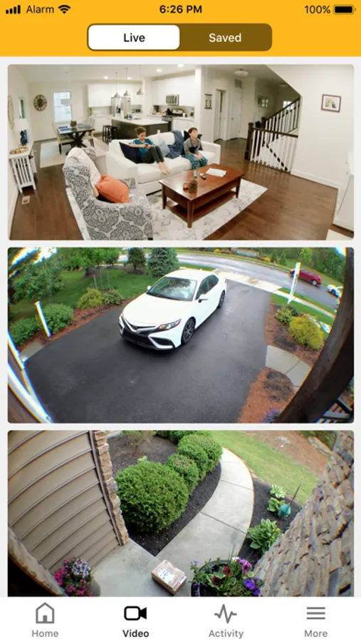 - Watch live and recorded video from your security cameras