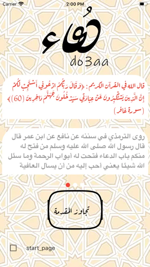 عبادة الدعاء كانت الانطلاق في تطبيق دعاء حيث يحتوي على ادعية مقسمة الي خمسة تبويبات اساسية وهي - دعاء جامع - دعاء من كتاب الله القرآن الكريم - دعاء الانبياء كما في كتاب الله القرآن الكريم - دعاء النبي صل الله عليه وسلم - دعاء ختم القرآن الكريم - دعاء للميت