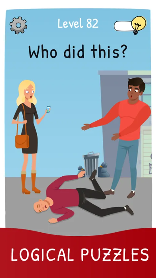 This mind game offers a great user experience with artistic and funny graphics and animations. You will play a variety of crazy riddles where you solve the problems such as who is a father and who is his wife. You will solve crimes, uncover hidden secrets, and complete complex puzzles by finding clues.