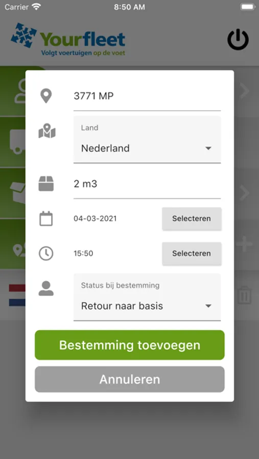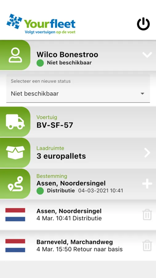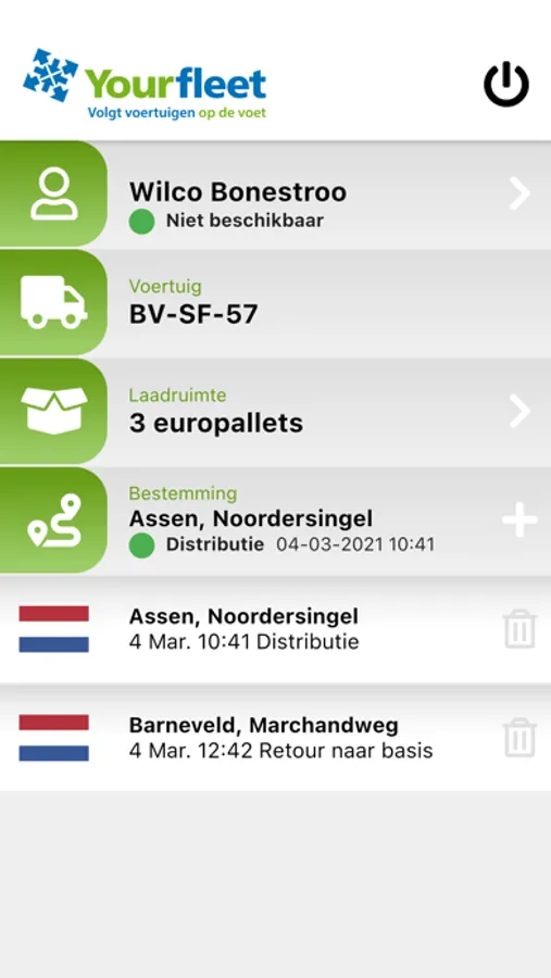Bestemmingsstatus. Ook kan de chauffeur een status aangeven