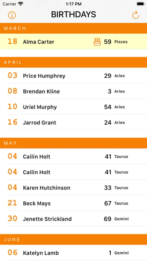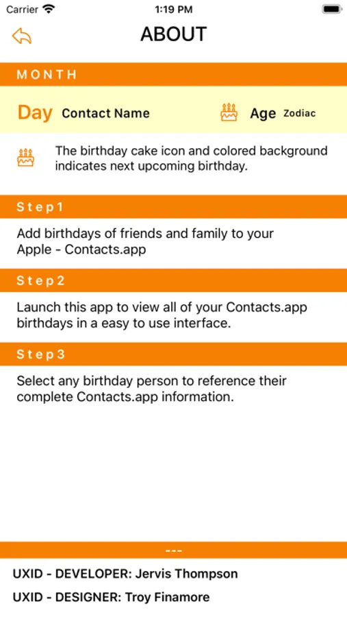 Introducing the ultimate birthday companion for your iPhone. Never miss a friend or family member's special day again! With this app, you can easily view all the birthdays stored in your Contacts app sorted by birthdate. The app highlights the next upcoming birthday making it easier for you to plan ahead. It also deep links to your contacts app. Plus, it even displays people’s age and zodiac sign, making it a fun and interactive way to stay organized. Download Birthdays today and make sure you never forget a birthday ever again!