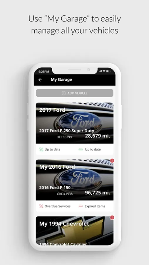 Add your insurance, license plate, registration, vehicle and warranty information in your digital glovebox and receive renewal alerts.
