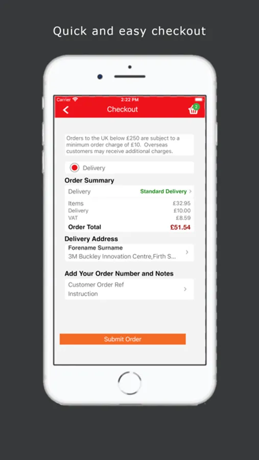 4. Place your order, then click and submit (partial orders can also be saved in the cloud to finish at a later date, on any compatible device)