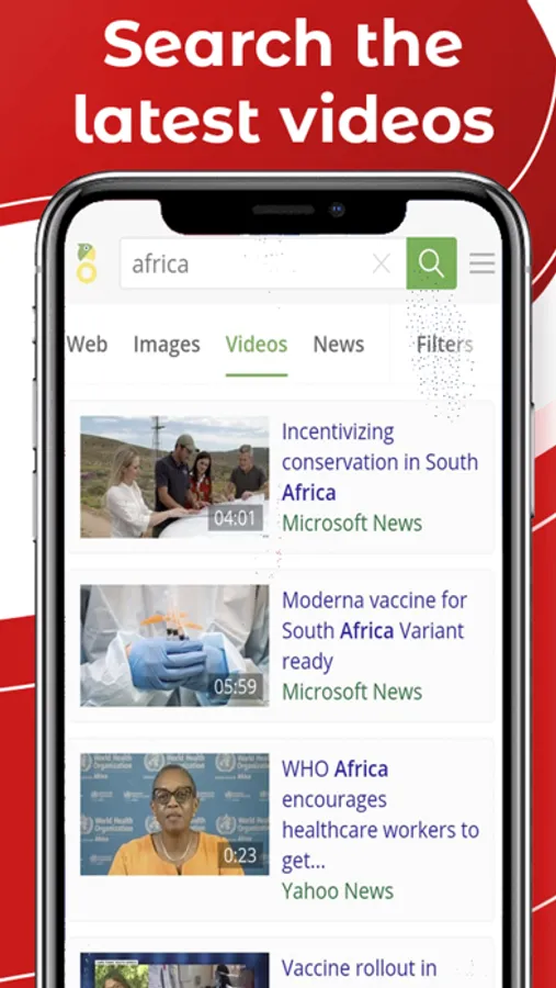 With Videos Search you can search on the web or specific sites, filters like Duration, Quality, or Period will help you find the video you’re looking for.