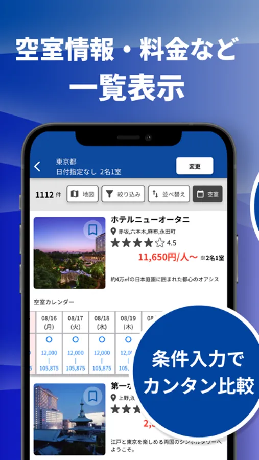 日付や人数選択はタップするだけで簡単にプラン検索できます