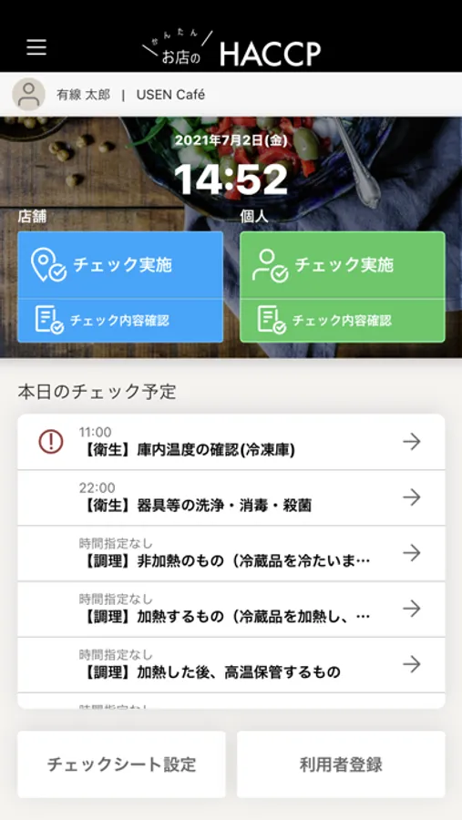 HACCPに沿った衛生管理計画の策定から、日々のチェック実施、記録の管理・保存まで、小規模事業者に義務づけられるHACCPの考え方を取り入れた衛生管理を、すべて実施することができます。