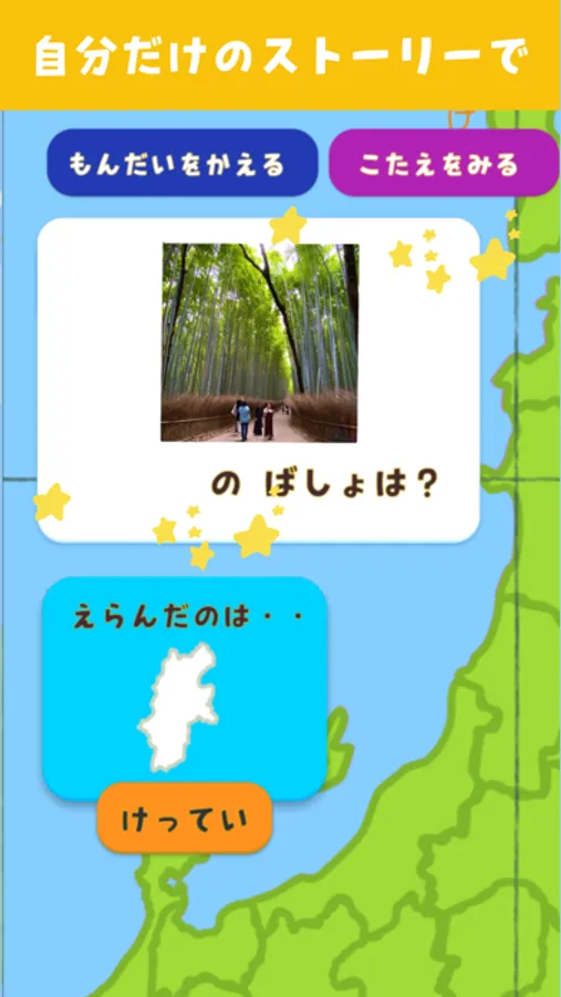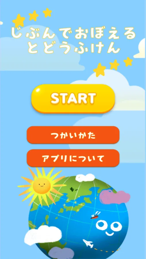 基本問題として都道府県の名前と、県庁所在地のクイズが入っています。