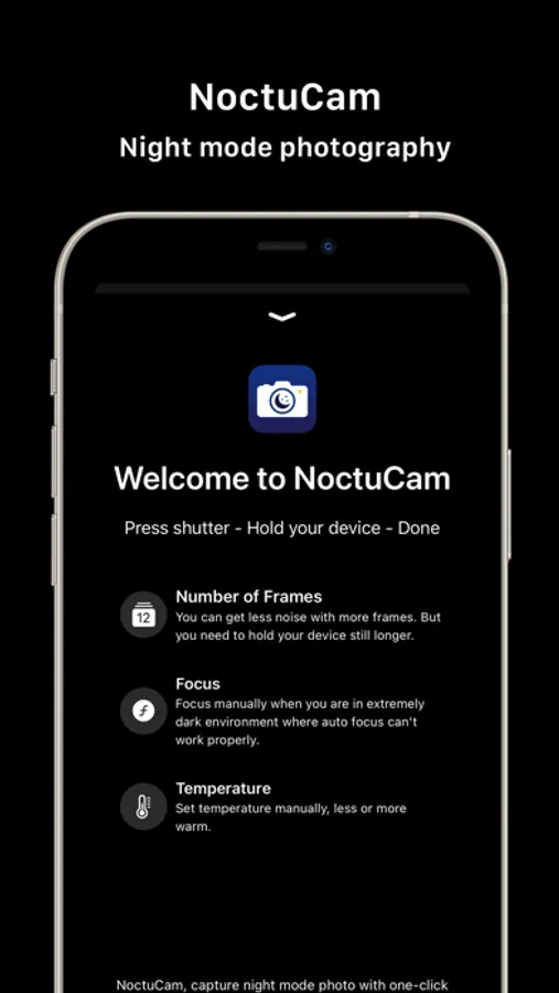 NoctuCam is compatible with iPhone 6s and newer devices, take night mode photo with one-click.