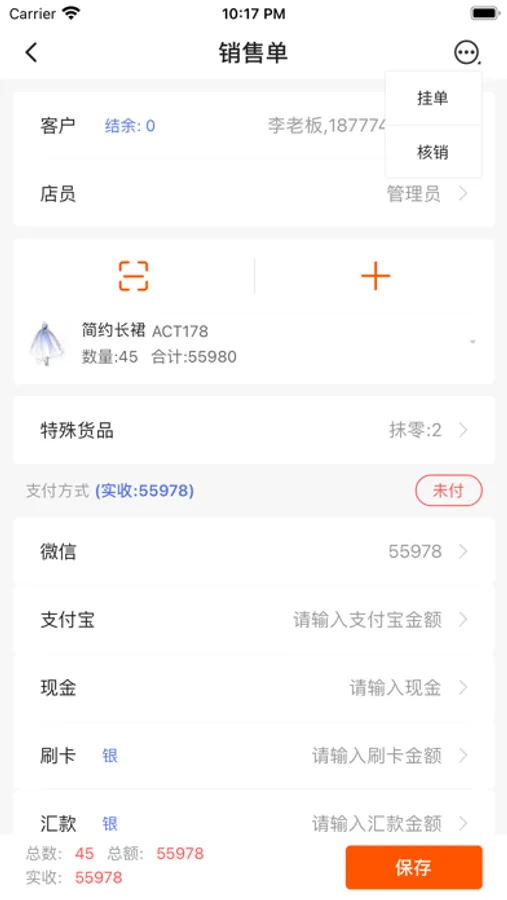 提供了关于销售开单,订货等所有功能,还有关于门店账务的一切数据。