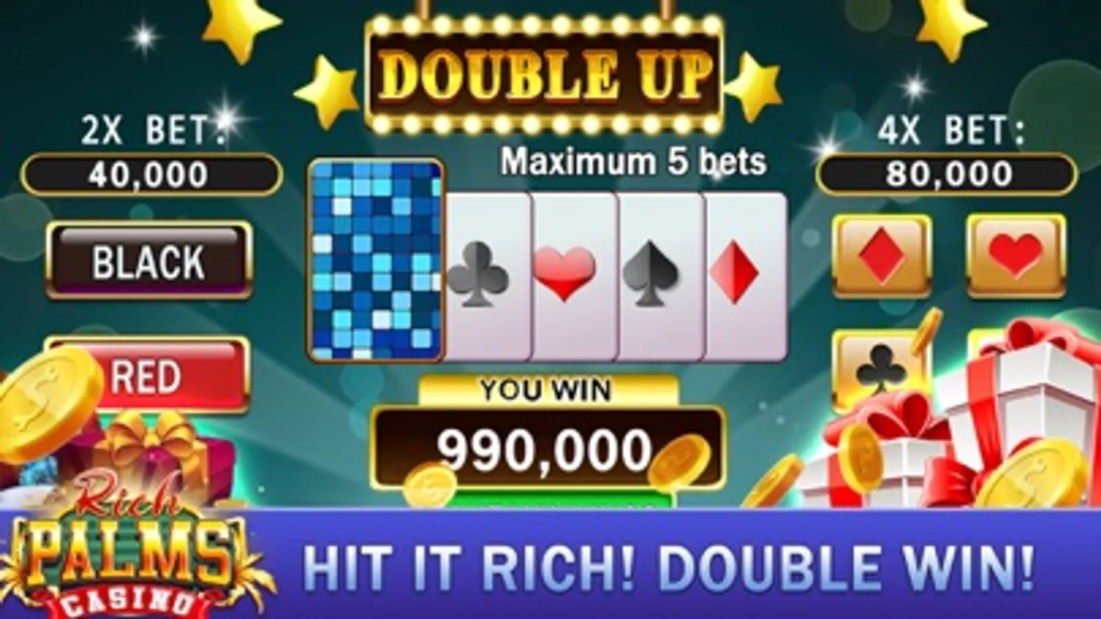 Vegas slots at your fingertips! Rich Palms casino slots features the most popular collection of Vegas free casino slot games with bonuses, straight from the slots you love! Portrait mode gives you an immersive Las Vegas experience! 100+ free slot casino games for you to choose from.