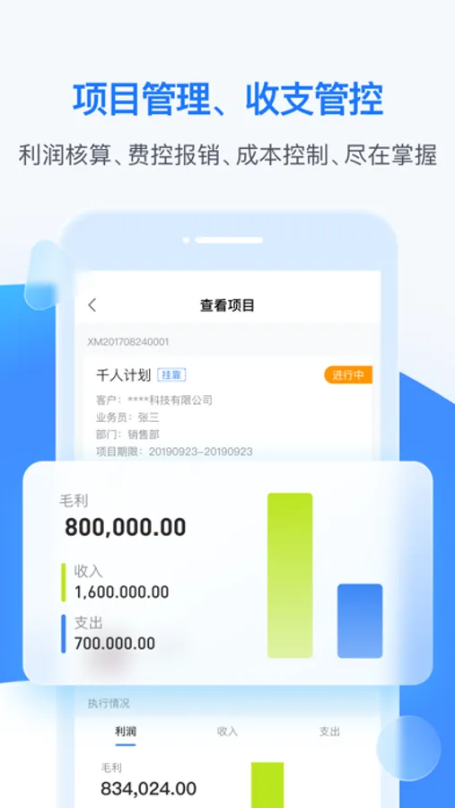 利润核算:实时核算项目/订单利润,把控成本。赚多少,亏多少,一目了然。