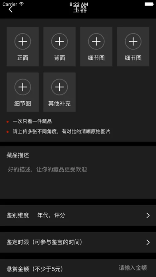 APP是一款可以满足有藏品希望在网上鉴别用户,同时可以看别人发布的产品、其他人评鉴了我的藏品或评论了我的回复。支持付费查看品鉴内容。